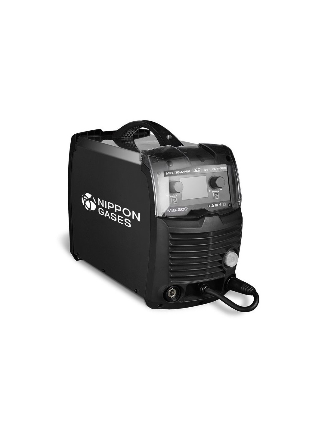 Equipo inverter sinérgico monofásico multiproceso de alto rendimiento (MMA / MIG / TIG). Regulación sinérgica. Ligero y portátil. Panel digital LCD de fácil manejo. Suministrada completa lista para usar.