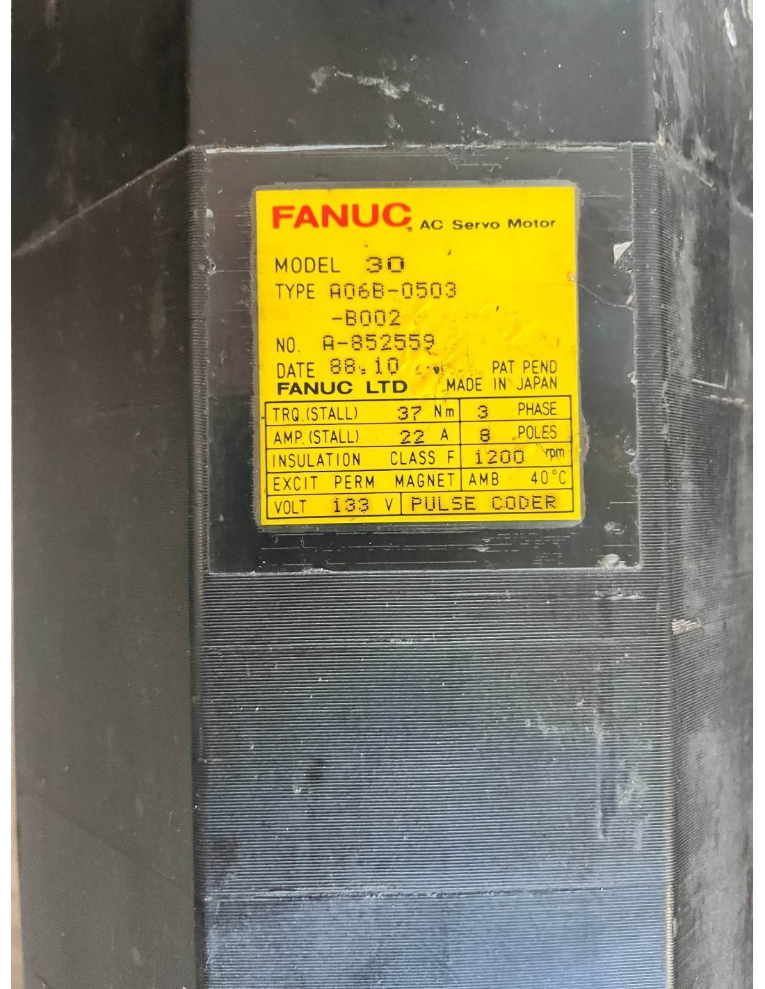 MOTOR SERVO FANUC A06B-0503-B002 MODELO 30 CNC 37Nm