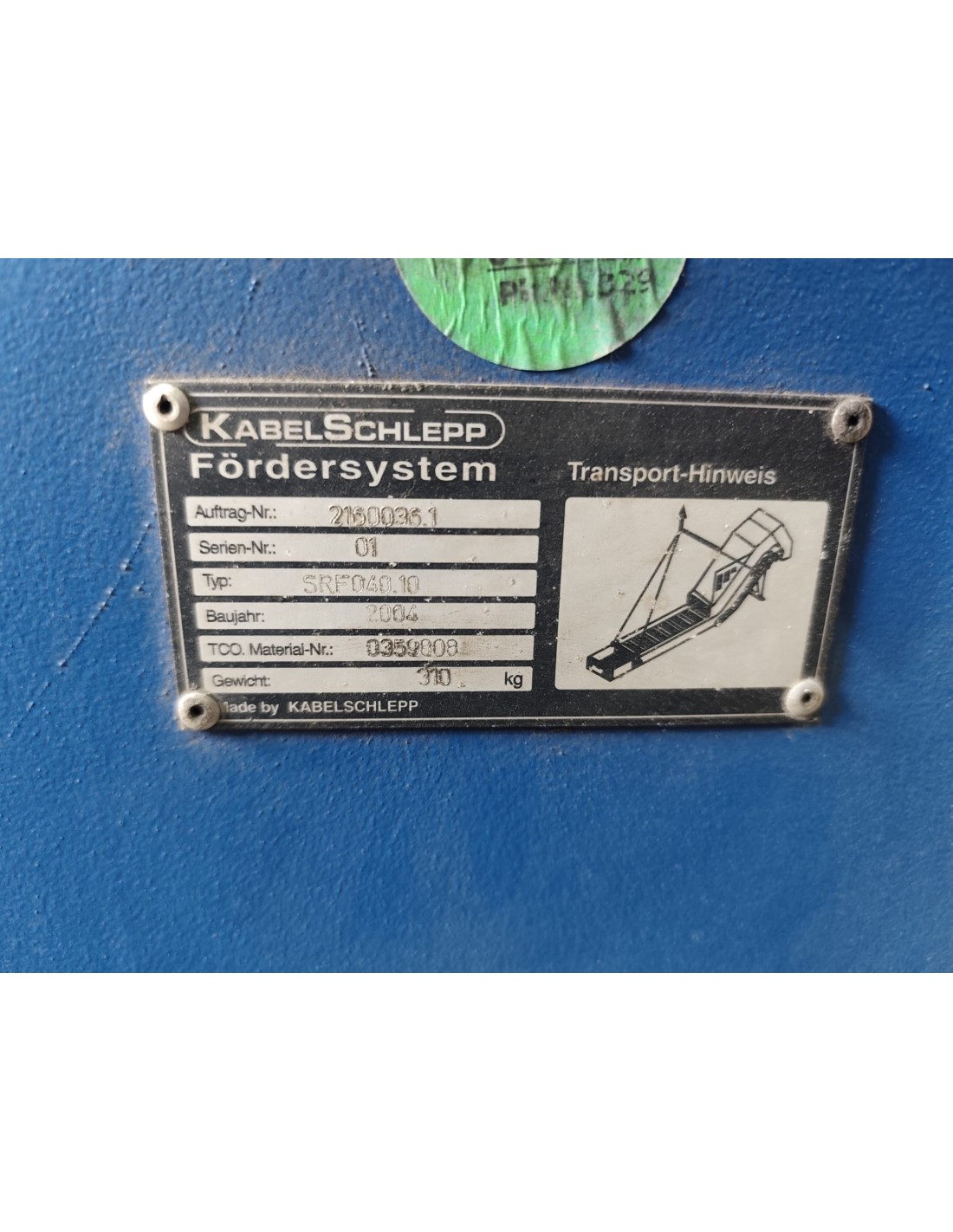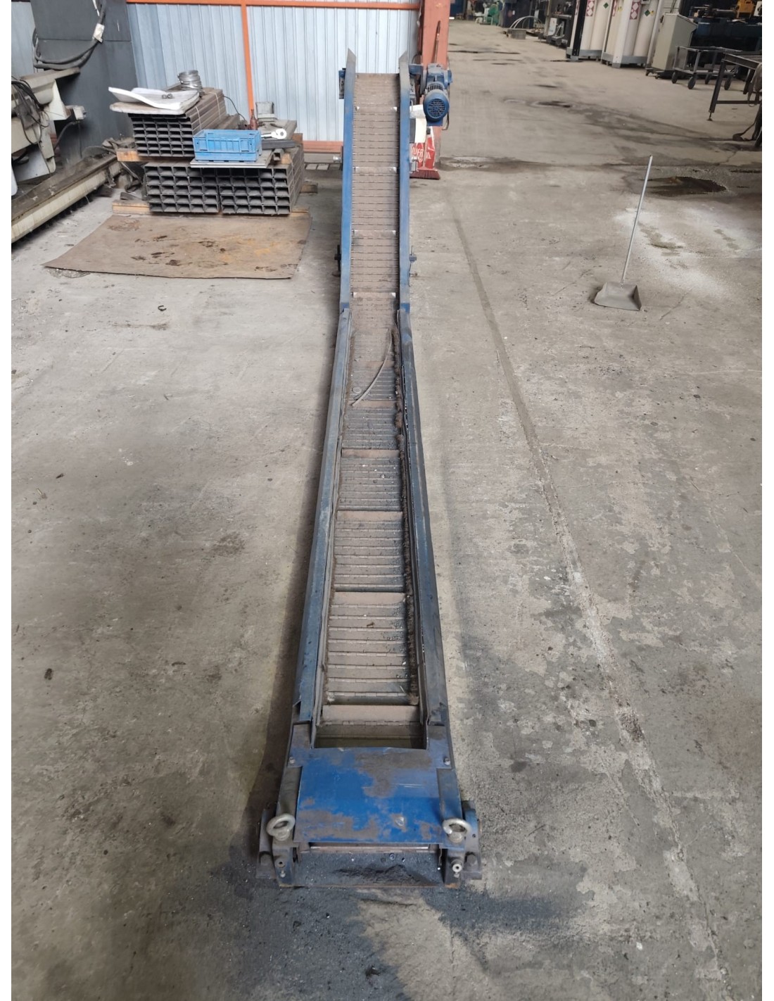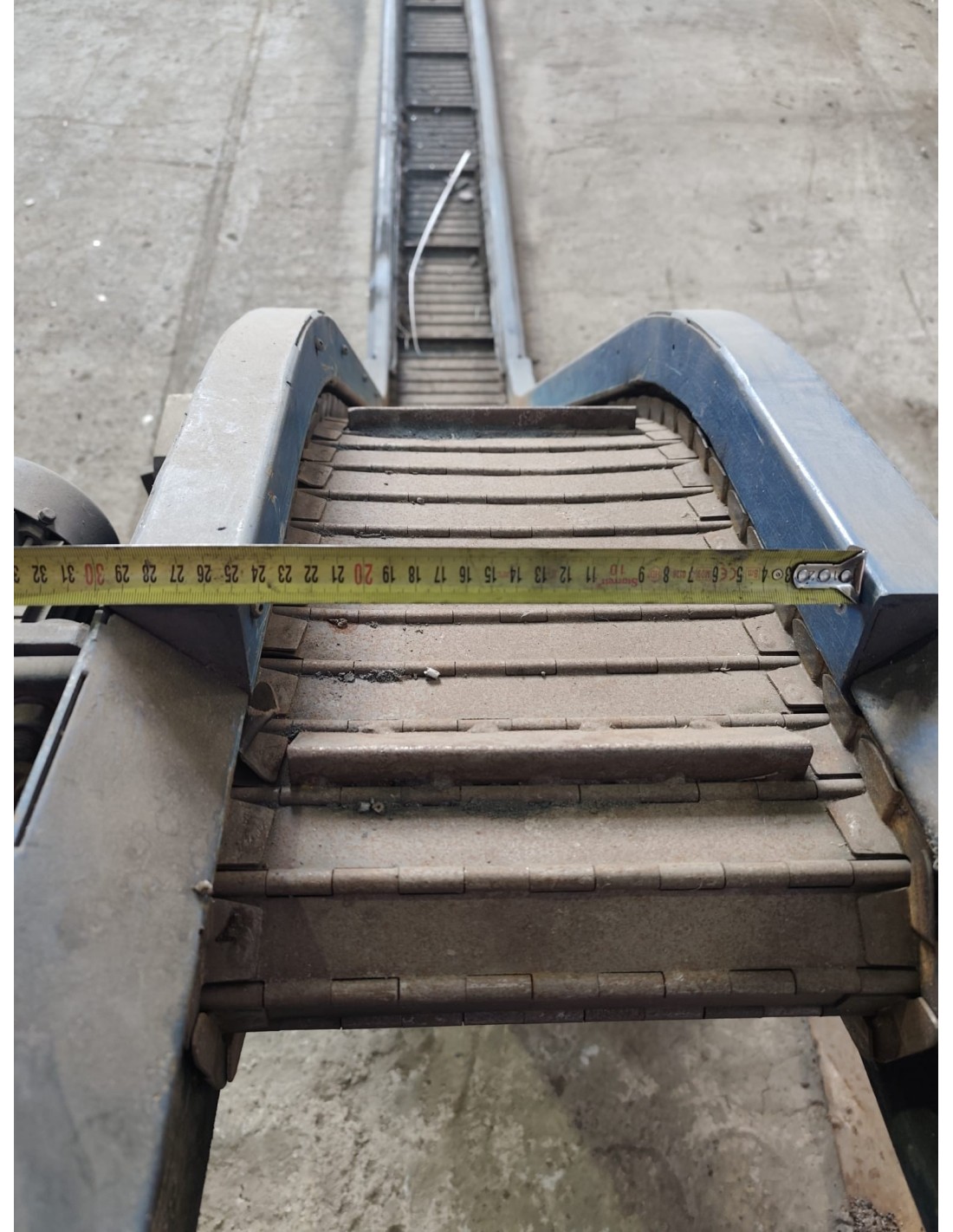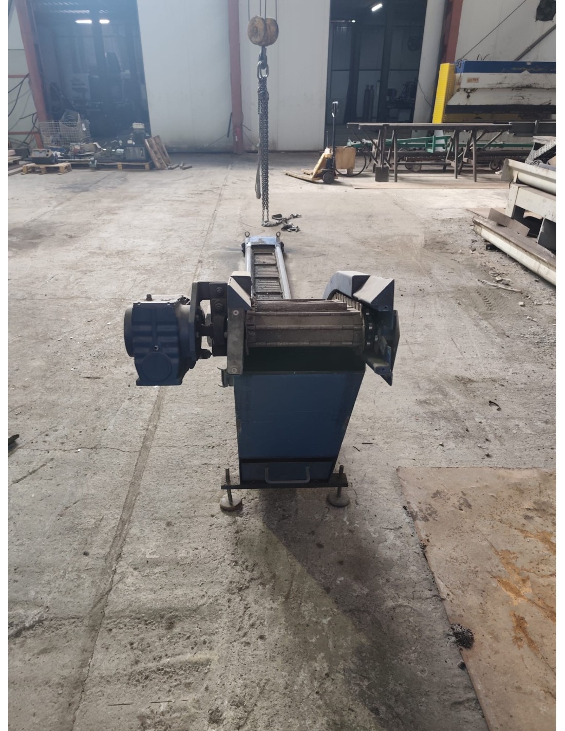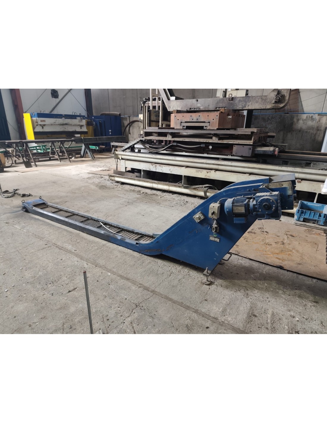 Cinta transportadora industrial KABELSCHLEPP de segunda mano, ideal para evacuación de viruta, recortes metálicos y piezas en talleres y líneas de mecanizado.